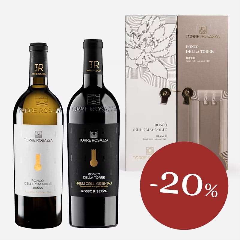 Ronco delle Magnolie, eine harmonische Mischung aus einheimischen und internationalen Weinen, vereint die Frische von Ribolla und die Noten von Friulano mit der Eleganz von Pinot Bianco und Sauvignon und verkörpert die Essenz eines modernen Friauls. Ronco della Torre, entstanden aus der Begegnung zwischen dem antiken Pignolo der Abtei von Rosazzo und dem internationalen Merlot, repräsentiert die Quintessenz und stilistische Entwicklung des Territoriums mit einzigartiger Tiefe und Raffinesse.